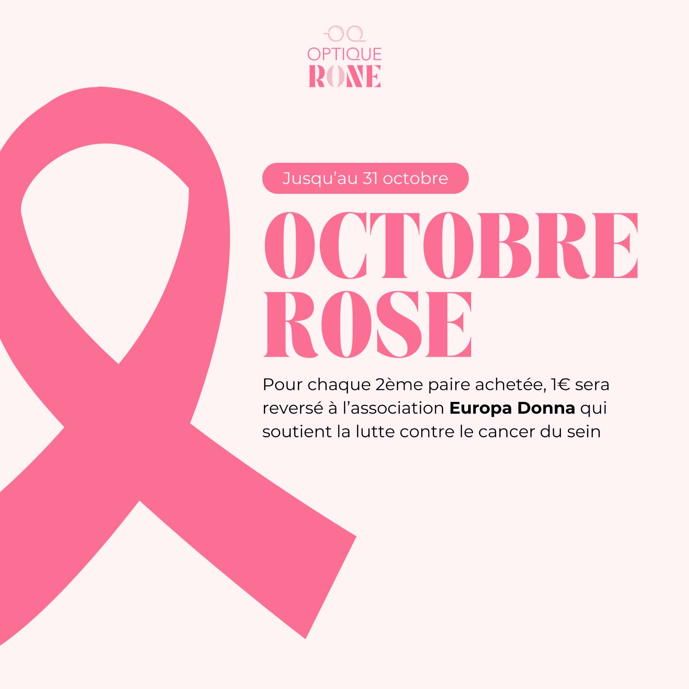 Pour chaque 2ème paire achetée, 1€ sera reversé à l'association Europa Donna qui soutient la lutte contre le cancer du sein